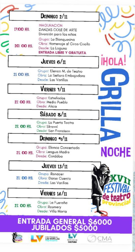 El viernes, en tanto, será el turno de la obra “Medio Pueblo”, del grupo Estrellados de Alicia, mientras que el sábado pondrán en escena “Skravel” del grupo La Puerta Teatro de San Francisco.